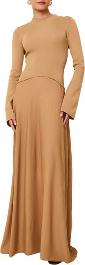 Designed to look layered, this sweeping maxi dress keeps you cozy with long fluted sleeves and a fluid funnel neck.