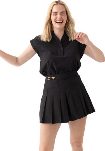 This lightweight, airy shirt is the way to go. Slits at the side allow for easy drapiness, and enjoy additional sun protection thanks to a flattering extended shoulder. Even better, an underarm gusset helps you stay covered and unbothered as you play.