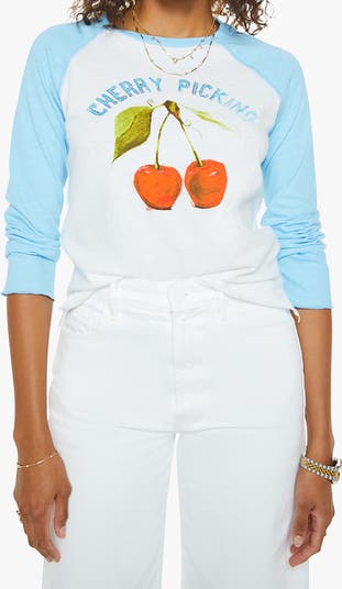 Strike the perfect balance of style and comfort in this sporty T-shirt made from soft cotton with baby-blue raglan sleeves and a fruity graphic cherry-picked for the season.