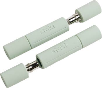 Flex between 2, 4 and 6 pounds with the Stakt Weights. These sleek adjustable weights inspire movement & help you build muscle. Patent #: D1,040,263 Versatile & Functional: Use the 2 lb base on it's own or add boost(s) to level up your workout Soft silicone texture with grooves for extra grip Perfect length to be used as a mini-bar for a variety of exercises