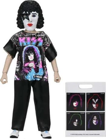 The Starchild (KISS) NECA Ben Cooper 6" Scale Clothed Action Figure (Paul Stanley). Rock and roll meets retro Halloween in this electrifying addition to the Ben Cooper Costume Kids Collection! NECA celebrates the legendary band KISS with fully poseable, 6-inch figures based on the licensed kids costumes from two of the largest Halloween costume manufacturers from the 1950s80s. Featuring faithful recreations of the original Collegeville costumes, this wave includes the Starchild, the Demon, the Spaceman, and the Catman. Each costumed action figure wears a mask and soft goods clothing replicating the signature vinyl look of the classic costumes and includes a trick-or-treat bag accessory with throwback artwork. Every figure is packaged in a numbered, retro-style window box that pays homage to the classic costume packaging.