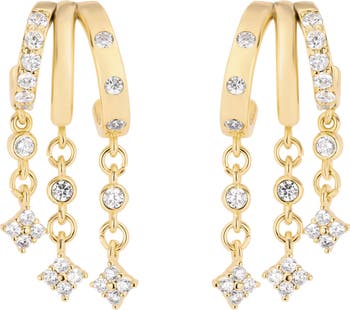 This huggie trio anchors delicate drapes studded with diamond‑shaped cubic zirconia that adds airy dimension and shine.