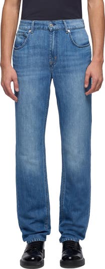 Classic and casual-cool, these perfectly balanced straight-leg jeans are made in a blend of cotton and linen for lightweight comfort in warm weather.