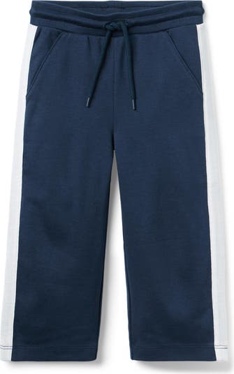 An athletic-inspired pant with a fashionable twist—think lightweight ponte, pieced jersey side stripes and a wide leg silhouette. Plus, pockets for the little things.