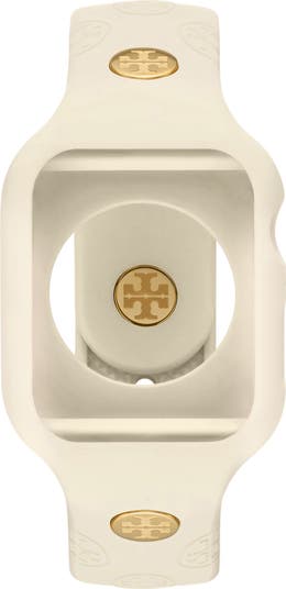 The iconic Tory Burch logo medallion adds branded appeal to a sporty silicone strap that will securely frame your 41mm Apple Watch.