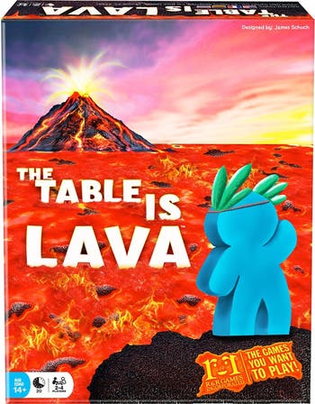 THE TABLE IS LAVA: As Dawn breaks, mount kahlualualuau is spewing its fiery lava down onto meepleville. The natives are frantically trying to escape the rivers of lava and remain on safe ground. Whoever’s group survives the eruption with the most Meeples shall be the winner! Each player chooses a color and takes the meeples and cards of that color. You are attempting to knock opponents’ meeples off cards while not knocking off your own.