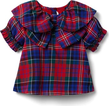 Tartan and bows? Two of our favorite things. With puff sleeves and ruffle cuffs, our pure cotton top adds seasonal style to any look.