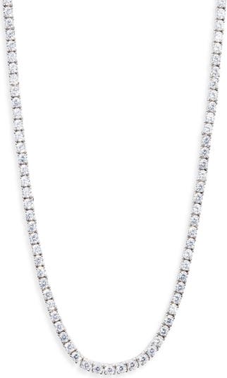 Light up your look with this timeless tennis necklace adorned with round cubic zirconia in four-pronged settings.