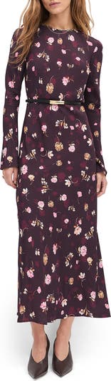 Brighten the mood in this sunny crepe maxi romanced by inky allover blooms.