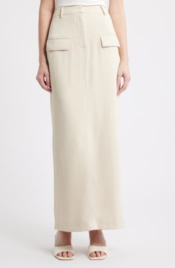 Build your polished look around this trouser skirt cut with a tailored silhouette in a column that flows to the slit, stride-accomodating hem in a drapey, fluid fabric.