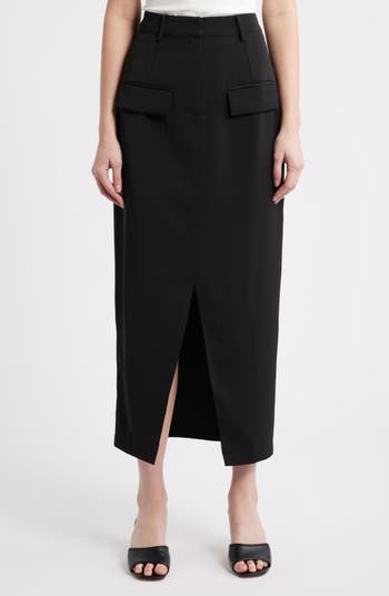 Build your polished look around this trouser skirt cut with a tailored silhouette in a column that flows to the slit, stride-accommodating hem in a drapey, fluid fabric.