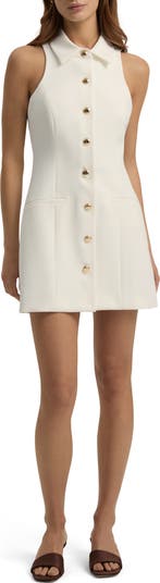 A sophisticated shirtdress is elevated with glinting buttons and made with comfortable stretch and shaping darts for a figure-skimming silhouette.