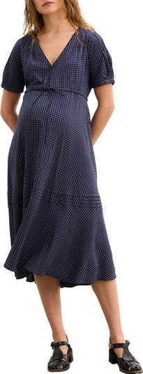 A season-less essential in custom stretch gingham seersucker, this midi is designed with delicate pintucks and a waist drawstring for your perfect fit—bump to baby and beyond.