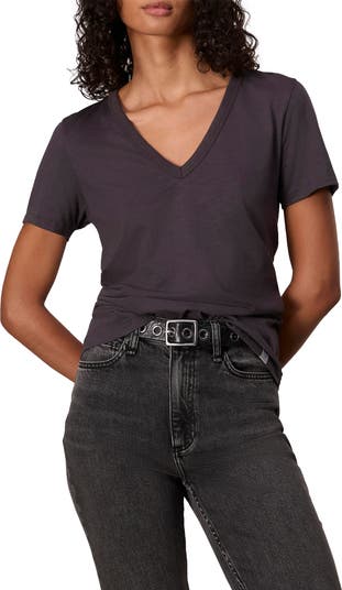 A loose-fitting V-neck T-shirt cut from slubbed cotton is sure to be a throw-on-and-go everyday favorite.