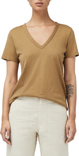 A loose-fitting V-neck T-shirt cut from slubbed cotton is sure to be a throw-on-and-go everyday favorite.