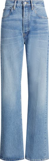 Right in between straight-leg and wide-leg, these soft and lightweight jeans create an elongated look with their superhigh waist and full-length inseam.
