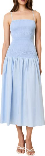 A strappy back adds unexpected edge to this summery sleeveless maxi made with a smocked bodice and flared skirt to sweeten the silhouette.