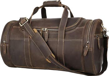 Add a classic touch to your travel needs! The Wainwright Weekender is equipped with plenty of pockets and compartments to store all of your items. This classic weekender is divided into three main sections with a larger compartment in the middle for all of your larger items and two end compartments for easy access to your smaller items. On each end, there are smaller zipper pockets to keep your tiny items separate. Our quality bags are handmade using Full Grain, Genuine Leather and are built to last! Material & Dimensions: Made of high-quality full grain leather Dimensions: 20.5" x 11.4" x 11" (52cm x 29cm x 28cm) Weight: 4.4 lbs (2 kg) Features: Exterior Pockets: 2 Zipper side pockets, 2 small zipper pockets. Interior Pockets: 1 large compartment, 1 zipper pocket inside. Fits devices up to 14" Two carrying options: Top leather grab handle or removable shoulder strap Ergonomically-designed straps distribute weight evenly. Removable and adjustable leather shoulder strap with metal rings that recede when not in use.