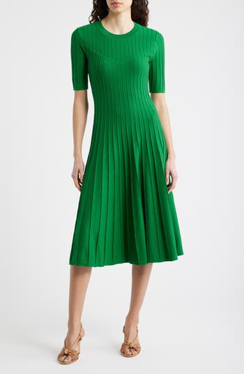 A chunky rib adds textural intrigue to a timeless fit-and-flare sweater dress perfect for parties, date nights or events.