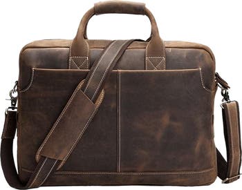 The Welch Briefcase is a mature in style and efficient in service. A perfect combination of shoulder bag and briefcase that provides comfort to the wearer and the capacity for all storage needs. This bag is sturdy, made of high-quality leather, and is capable of carrying securely, valuable gadgets, laptops up to 14 inches, as well as any further items. Not only is this briefcase highly functional, but its classy in appearance, the elder statesmen of leather bags that looks like it belongs in any environment; allowing the owner to carry it confidently into any occasion, formal or not. Material & Dimensions: Made of high-quality full grain leather Polyester Lining Dimensions: 16.5" x 12" x 3.5" (42cm x 30cm x 9cm) Weight: 3.7 lbs (1.7 kg) Shoulder Strap: 53.1"(135cm) Features: Interior: 1 zippered back pocket. Interior: 2 central compartments and pencil holders Carrying: Leather-lined comfortable grab handle made from high-quality material. Wear-proof and durable. Ergonomically-designed Adjustable straps distribute weight evenly across the back. Two carrying options: Grab handle and adjustable shoulder straps What Fits: 15" Size - Laptop Compartment Please note that this bag is made of natural material, therefore each bag is unique with a slightly different color.