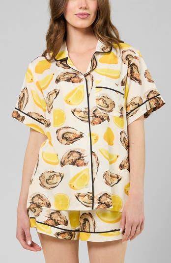 As refreshing and joyful as a summer day eating oysters and sipping rosé, this print is sure to boost any mood. Our Women’s Pajama Shorts Set — is cut in a timeless silhouette with classic piping detail. The shorts’ elastic waist and adjustable ribbon tie ensure a custom, universally flattering fit.