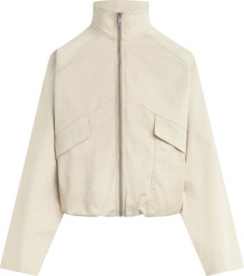 Sporty structure meets modern shape in this stretch-cotton jacket styled with a sleek stand collar and flap patch pockets. A softy bubbled hem and slightly abbreviated fit give the silhouette a fresh, contemporary edge.