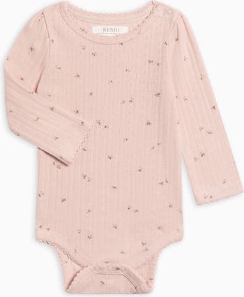 The Thea Pointelle Long Sleeve Bodysuit is designed to keep your little one cozy and stylish through the cooler months. This charming bodysuit features a snap shoulder design for easy dressing, with gathered sleeve caps adding a touch of elegance. The picot edge detailing along the neckline, sleeves, and leg openings enhances the sweet and sophisticated look. With a convenient snap crotch for quick changes, the Thea Bodysuit combines practical features with the softness of pointelle fabric, making it an ideal choice for fall and winter wear.