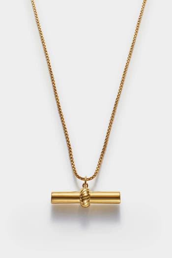 The Themis T-Bar Necklace is made from durable 18K Gold PVD coating, making it certified waterproof, sweat-proof, and life-proof. Featuring a sleek T-bar pendant design that is utterly timeless, it stands out solo or pairs beautifully with the matching bracelet, earrings, and ring. Presented in a reusable suedette pouch, it's ideal for gifting or taking with you on the go.