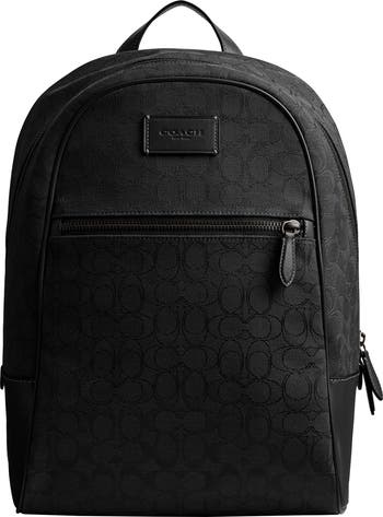 Tonal logo monograms and rich leather lend luxe elements to a spacious backpack designed with comfortable mesh backing.