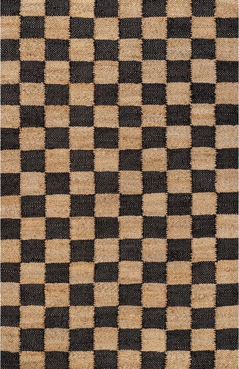 Theo Modern Farmhouse Woven Jute Checkerboard Area Rug