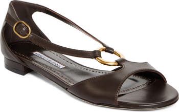 Gleaming ring hardware accentuates the strappy profile of this leather flat that will add a polished finish to your warm-weather ensembles.