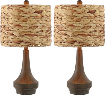 - This lamp's brown wood finished resin base is complemented by the timeless, natural water hyacinth shade