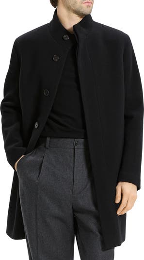 The focus is on the fabrication for this overcoat tailored in a clean, straight-cut silhouette from a cashmere-kissed melton wool blend.