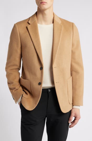 A lightly structured silhouette and front patch pockets bring modern ease to this packable blazer fashioned from a soft blend of wool and linen.