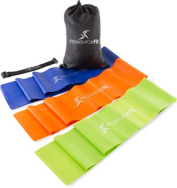 Whether an expert in the gym, a beginner to working out, a fan of Pilates, or rehabilitating after an injury, ProsourceFit Therapy Flat Resistance Bands are one of the best ways to safely stretch and strengthen muscles. Ideal for upper body, lower body and core strengthening, these durable elastic bands are color-coded to indicate 3 resistance levels: light, medium and heavy. The variety keeps muscles challenged in new ways, helps progress through physical therapy exercises and gently assists with stretching. They allow you to work from different angles to involve more muscle groups, with a greater range of motion than with traditional weight machine exercises. The flat, lightweight design is extremely versatile for toning as well as Pilates exercises and yoga poses. Loop around a sturdy object or tie at the ends for endless possibilities to improve balance, strength and coordination. They are also perfect for all types of physical therapy including rehabilitating torn rotator cuffs, bad elbows and damaged knees. Use to stretch hamstrings, shoulders, quadriceps and more. High-quality latex rubber guarantees high resilience for ongoing use. A door anchor and convenient carrying bag enable you to work out from home or while traveling, so you can stay fit wherever life may take you. Train like a Pro, train with ProsourceFit!