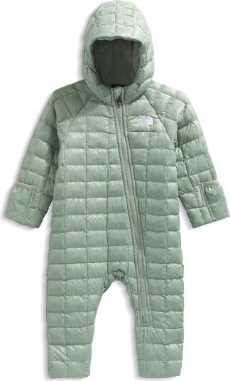 Keep your little babe covered from head to toe on icy-cold days in this insulated snowsuit with cozy fleece lining in the hood and upper body for added warmth.