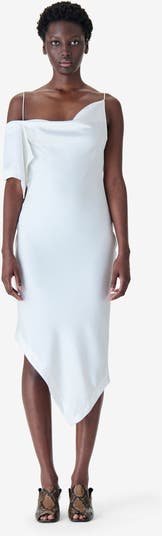 - Aysmetrical bias cut midi dress with a cowl neckline