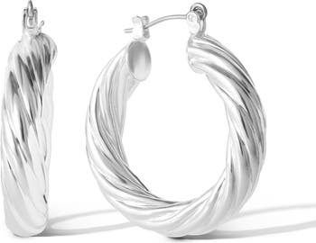 Jessica Simpson Earrings: Thick gold hoop earrings boast a twisted design for a sophisticated take on classic gold hoops. These small hoop earrings for women are wonderful for everyday wear