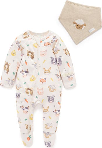 Soft, easy and practical, our Thick Zip Coverall Set is a wardrobe essential for your little one. Featuring a Coverall with a fun all over farmyard print, two way zip all the way through for easy dressing, and a safety fold at the neck. Includes a matching applique bandana bib to complete the look! Made from the softest 100% Cotton for a soft and gentle touch against your little one's skin.