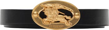 A belt made in Italy from smooth calf leather. The design reverses to solid colour and features a metal buckle detailed with our logo and cut-out Knight stamp, an archival motif from the 1980s.