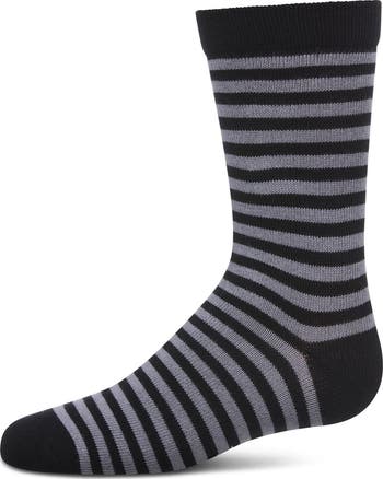 For a fun sock that will still make your kid feel sophisticated, try our Thin Stripe Boys Crew Sock. This sock, with coordinated cuff/heel/toe, features alternating thin stripes that create a pleasant visual that will pair well with all their clothes. Made with a cotton blend, these socks are soft and comfortable, easy to wear all day long no matter what the activity. Available in multiple colors, so stock up!