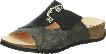 Cleverly devised orthopedic comfort footbed sandal perfectly supports and cushions your foot with every step. Anatomically contoured natural cork/latex footbed is lined with suede for a fabulous feel.