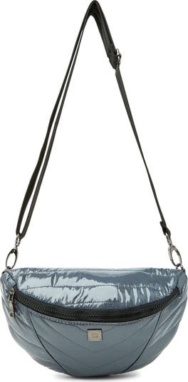 Signature channel quilting textures a compact bag outfitted with adjustable, removable straps that allow you to wear it on your shoulder, waist and as a crossbody.