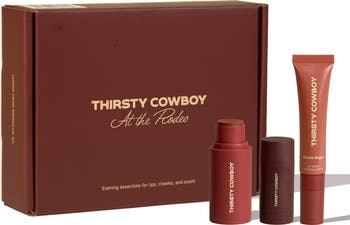 How to use: Swipe on Lip Syrup for instant hydration, sheer color, and high-shine gloss. Layer for a deeper tint. Apply Toasted Tint to cheeks with fingertips or a brush. Blend out for a sheer tint, or layer for more color. Finish by applying Cowboy Stick to your neck and wrists.