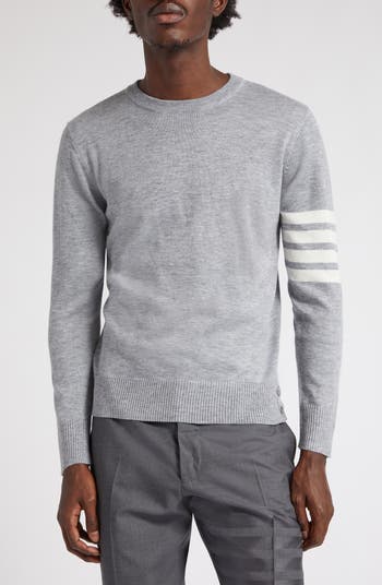 A quartet of bold stripes circle the sleeve of a fine-gauge merino wool pullover with next-to-skin softness and refined athletic edge.