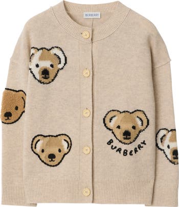 A crew-neck cardigan in wool, patterned with intarsia-knitted and towelling Thomas Bear motifs. The design is finished with our embroidered logo.||Button closure|Rib-knit trims