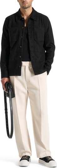 Crafted from soft suede fabric, the suede long sleeve shirt pairs casual ease with elevated texture. It features tonal button detailing and functional chest pockets for a clean, cohesive look. Tapered cuffs and a classic collar frame add subtle definition to this wardrobe staple.