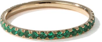 Light your stack up with vibrant color when you wear this slim band ring that dazzles with 27 faceted emeralds.
