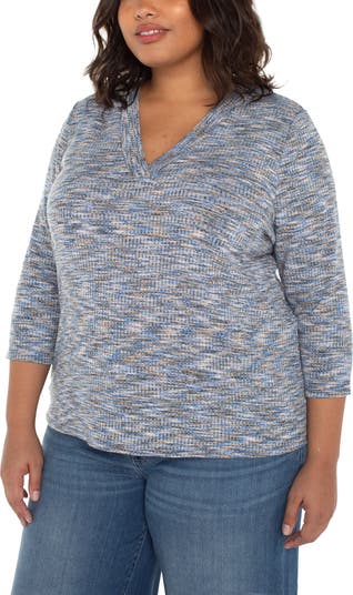 Liverpool Los Angeles Three-Quarter Sleeve Knit Top, Main, color, Blue Spacedye