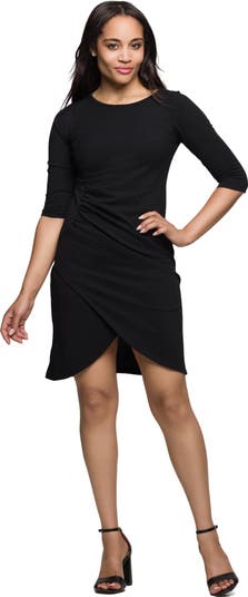 Three Quarter Sleeve Ruched Tulip Hem Mini Dress